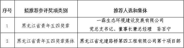 關于推薦申報第24屆黑龍江省青年五四獎章人選和集體的公示