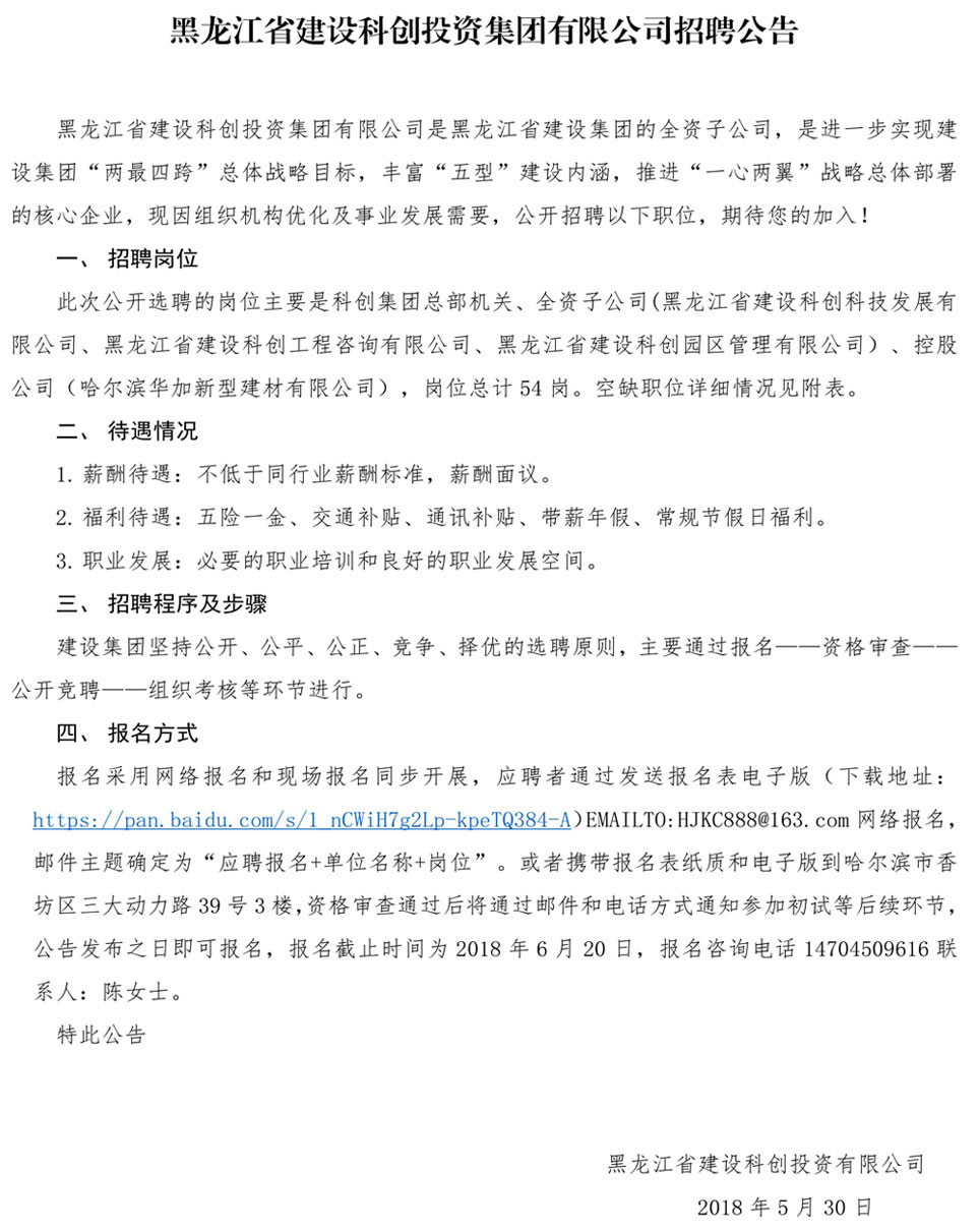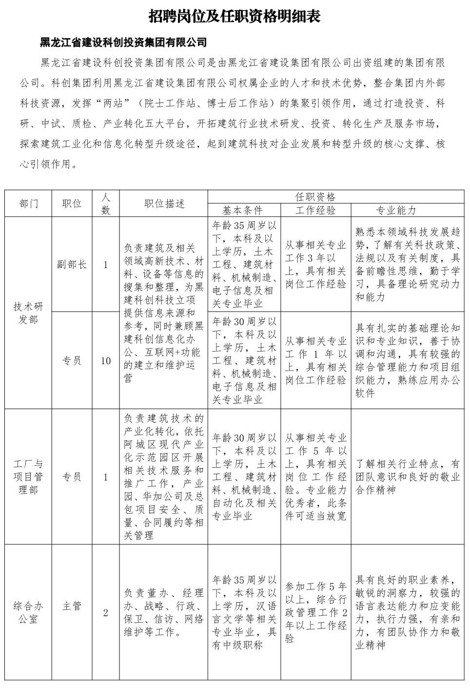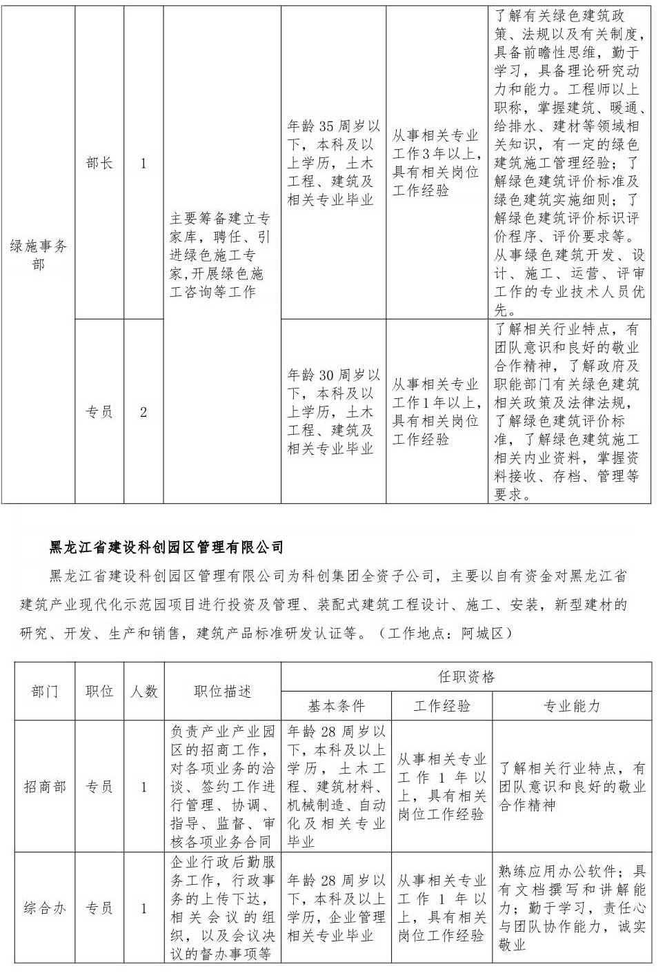 招聘公告——黑龍江省建設科創投資集團有限公司招聘公告