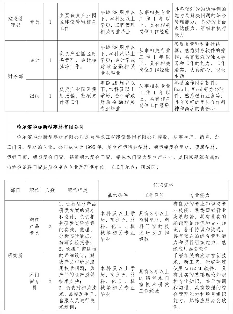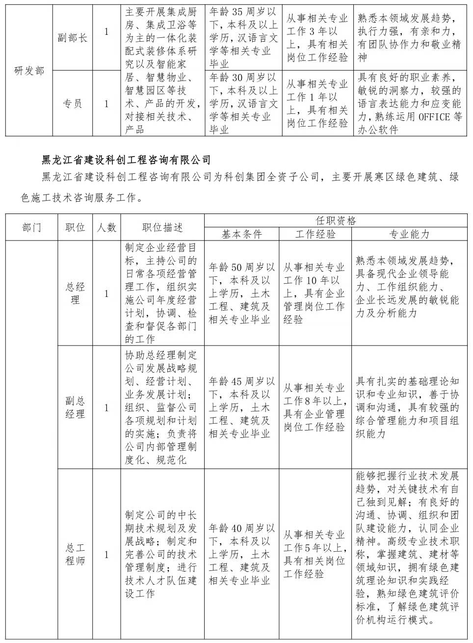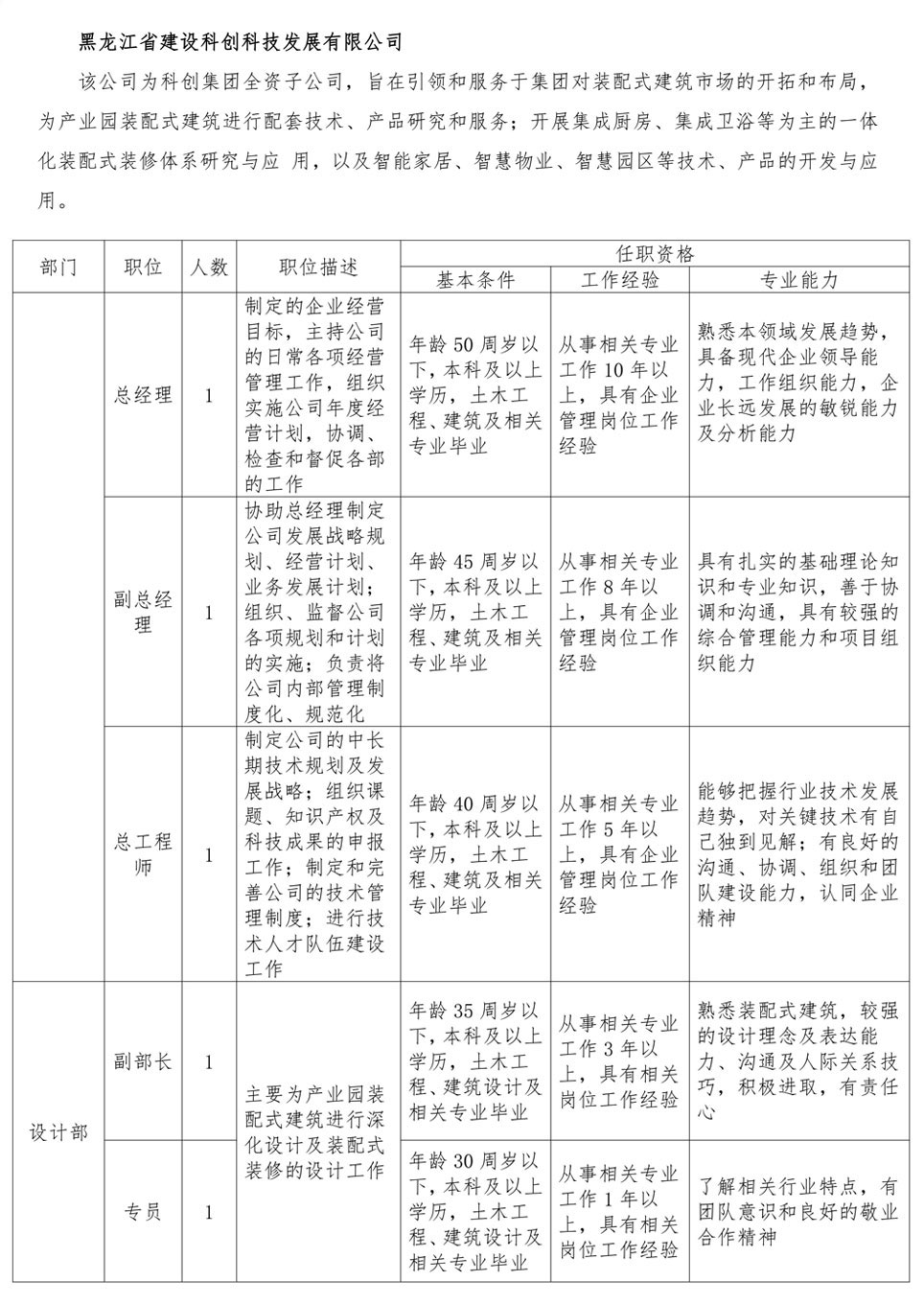 招聘公告——黑龍江省建設科創投資集團有限公司招聘公告