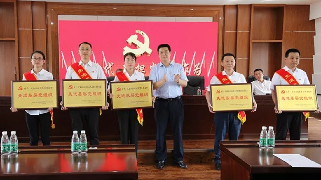 會(huì)上,武士軍同志宣讀了表彰決定。龍安六公司拉薩項目黨支部等5個黨支部被(bèi)授予“先進(jìn)基層黨組織”榮譽稱号,韓烽等35位同志獲“優秀共産黨員”榮譽稱号,李冬梅等4位同志獲“優秀黨務工作者”榮譽稱号。龍安集團領導班子成(chéng)員爲受表彰代表頒發(fā)了牌匾和榮譽證書。